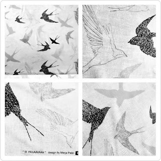 Ilokseni sain tänään postin tuomana nähtäväksi kevään uutuuksiani Eurokankaan mallistossa. Ei päivääkään -kangas vie ajatukset toukokuun lopulle, kun pääskyset lentelevät pesänrakennuspuuhissa. Rakkaan harrastuskeni ratsastuksen myötä olen seuraillut tallilla pääskysten elämää. Tallilta kun löytyy paljon pesänrakennusmateriaalia ja hyviä pesimispaikkoja, jokaisella tallilla on myös pääskysiä pesimässä räystaiden alla ja kattoparrujen päällä.